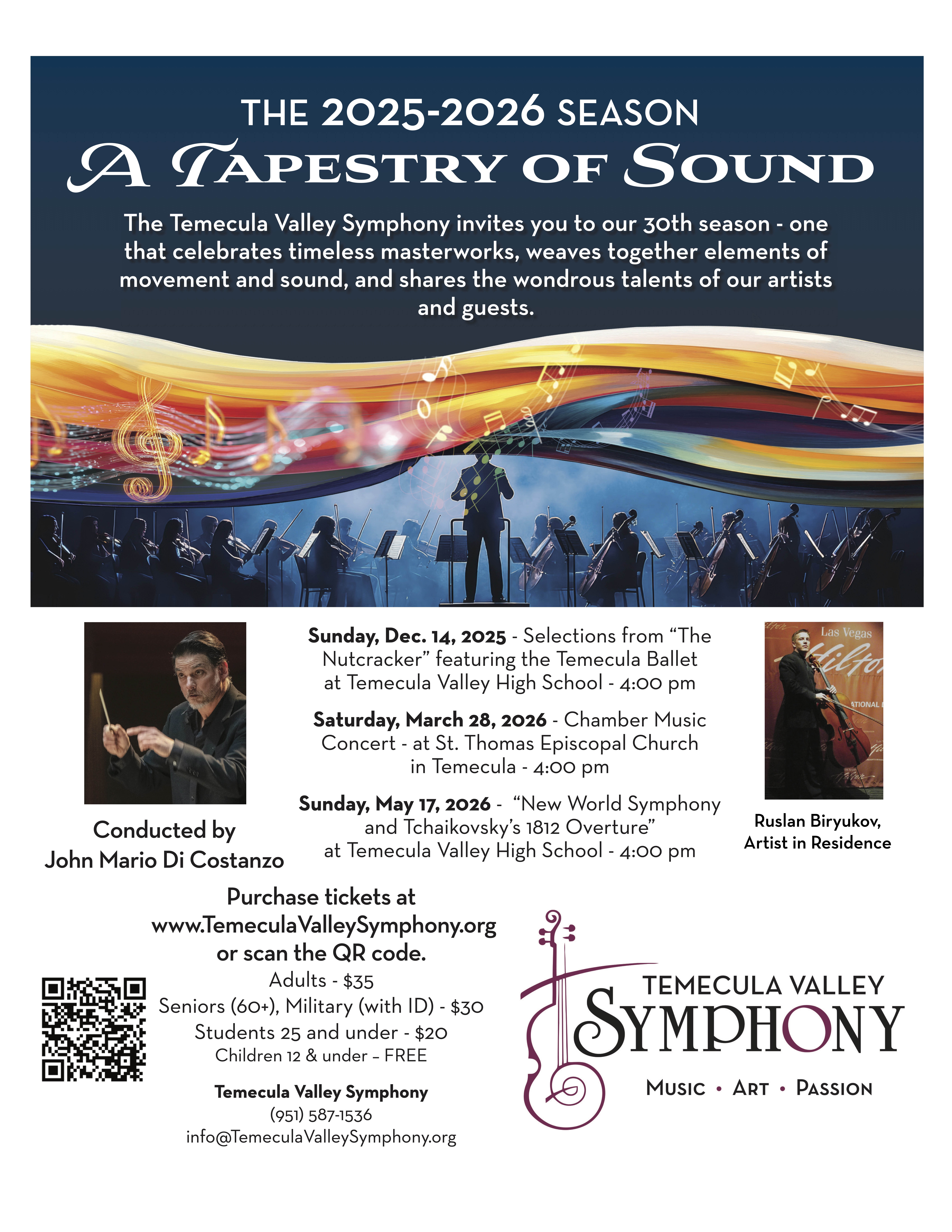 Please join the Temecula Valley Youth Symphony for our final concert of the season the evening of Monday, May 20th at 7:30pm.